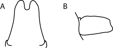 The main morphological character that distinguishes Schistocerca from the rest of the subfamily is the shape of male subgenital plate (Fig. A). The genus has a bilobed male subgenital plate whose lobes are distinctly protruding. The shape of male cerci is quadrate in its basic form although there are many modifications (Fig. B).